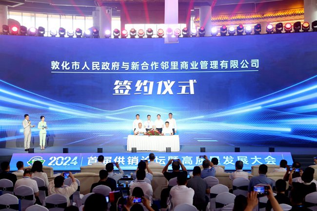 在全国上下深入学习贯彻党的二十届三中全会精神之际,2024首届供销论坛暨高质量发展大会在敦化召开,这是敦化抢抓新一轮市场经济体制改革机遇,主动融入全国统一大市场的探索和尝试,也是敦化立足产业基础、资源禀赋和比较优势,借助“供销力量”推动县域经济高质量发展的实践和创新。论坛期间,敦化市人民政府与新合作邻里商业管理有限公司、北京新合作商业发展有限公司、北京国融工发投资管理有限公司签订项目合作协议,多维度、多角度、多产业助力县域经济发展。